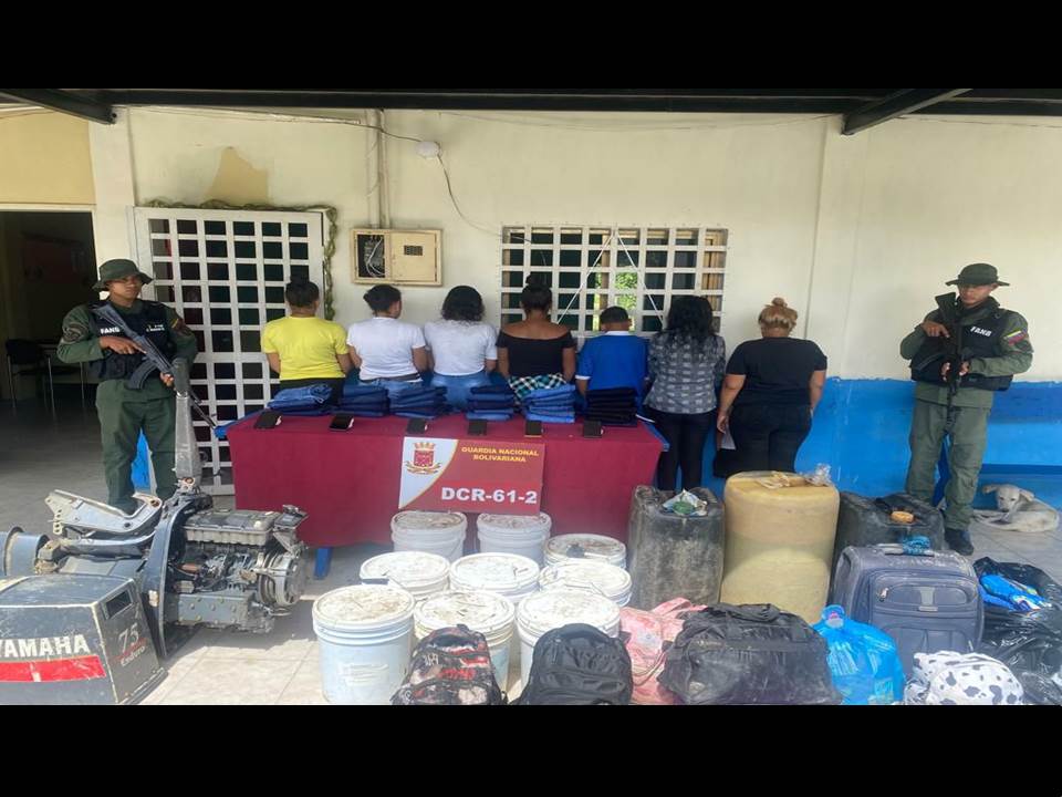 El destacamento de Comandos Rurales 61-2 de la Horqueta realizó la mañana de este martes 28 de noviembre la detención de siete personas por el delito de contrabando de mercancía sin optar con la permisologia e intentar pasar hacia la isla de Trinidad y Tobago a tres infantes que no se encontraban con sus representantes.