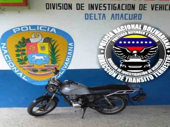 La Policía Nacional Bolivariana logra incautar una moto por estar solicitada por la Delegación Municipal del Cicpc.
